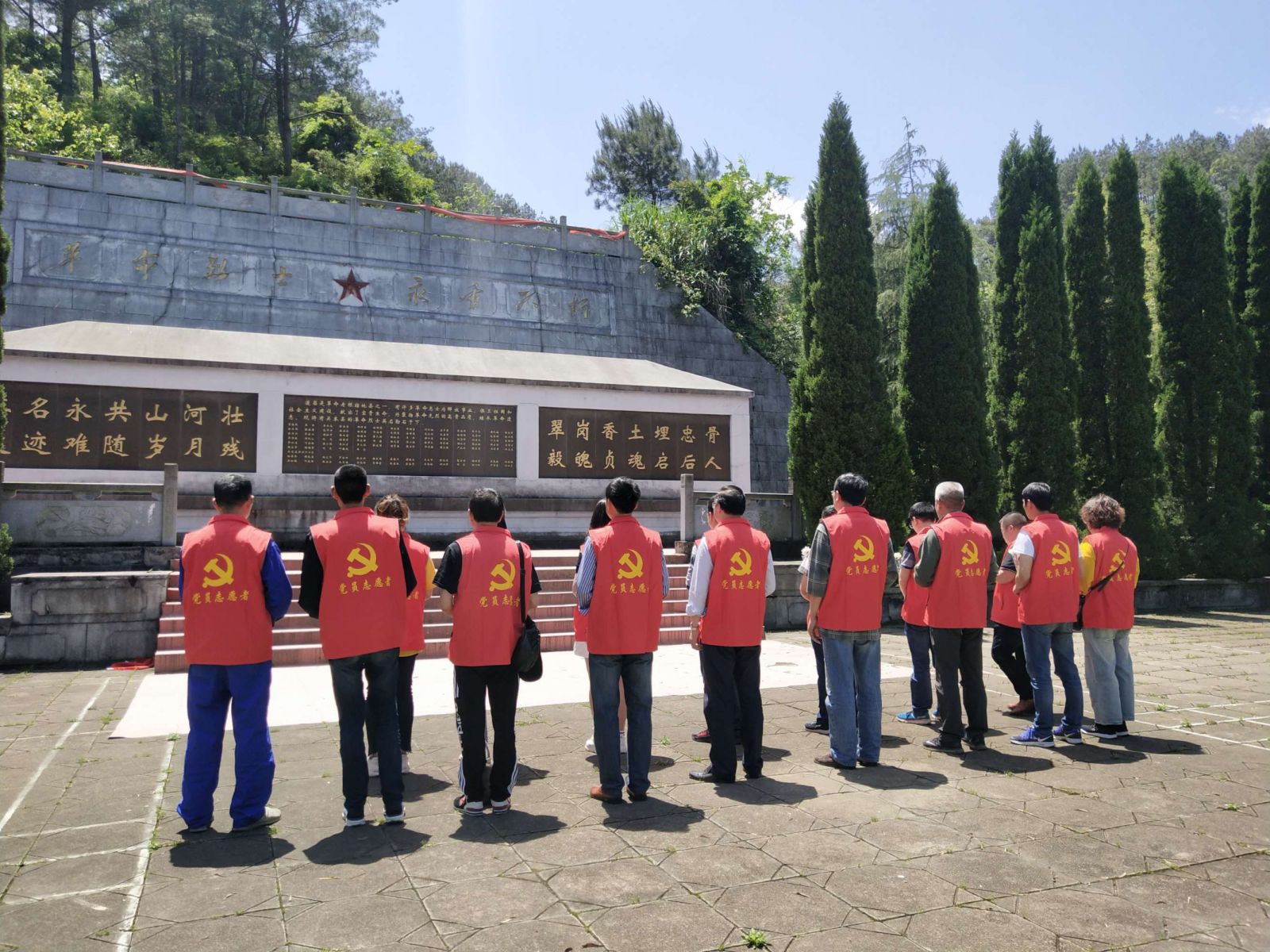 活動(dòng)中同志們瞻仰烈士墓碑,繞烈士墓一周,追憶英烈事跡。