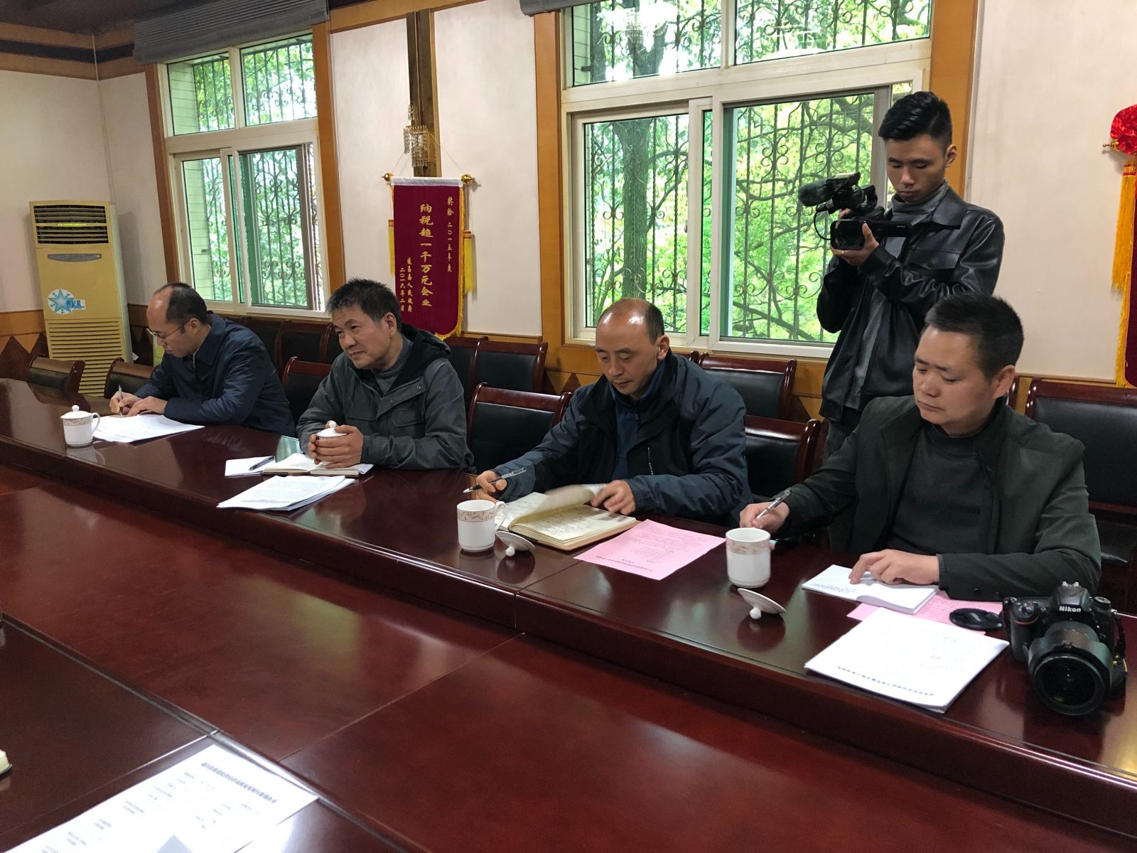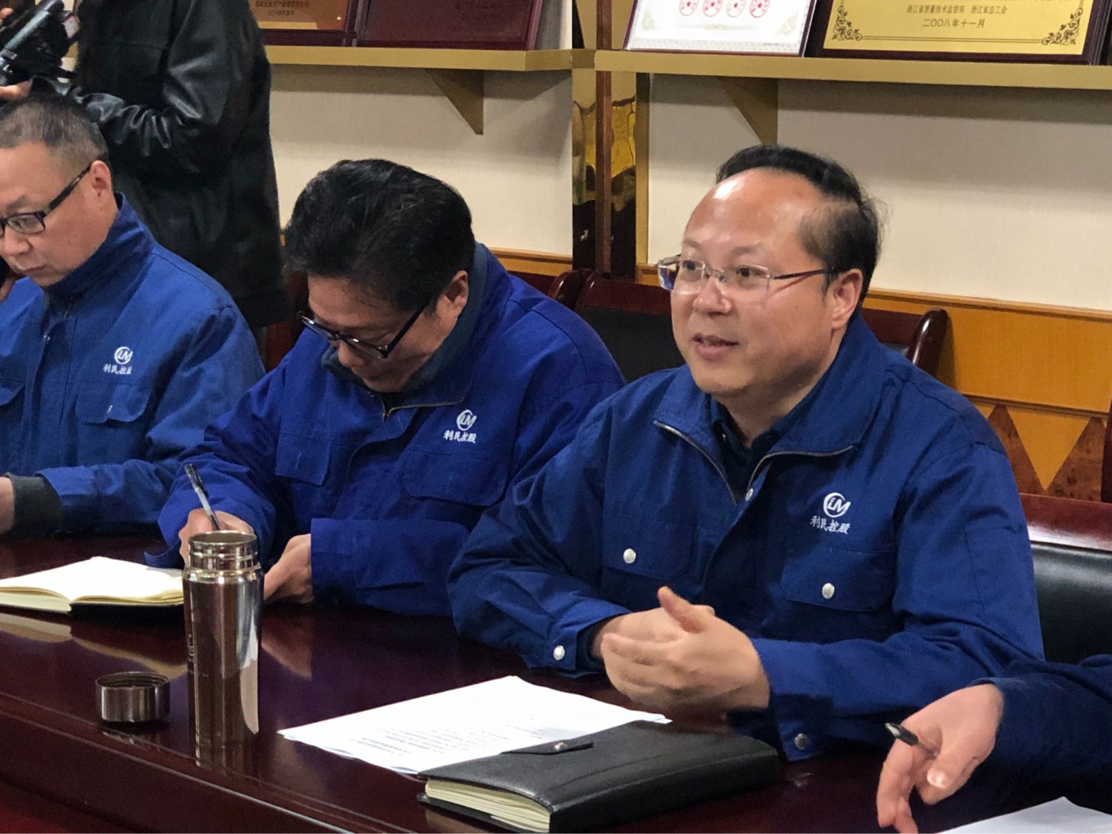 2019年4月2日下午,遂昌縣人大尹建中主任攜縣經(jīng)商局局長吳華軍等相關(guān)人員走訪浙江利民控股股份有限公司。于控股集團(tuán)會議室召開調(diào)研座談會。公司董事長李峰、財務(wù)總監(jiān)翟水根、副總經(jīng)理濮發(fā)祥、辦公室主任李軍一同參加交流。