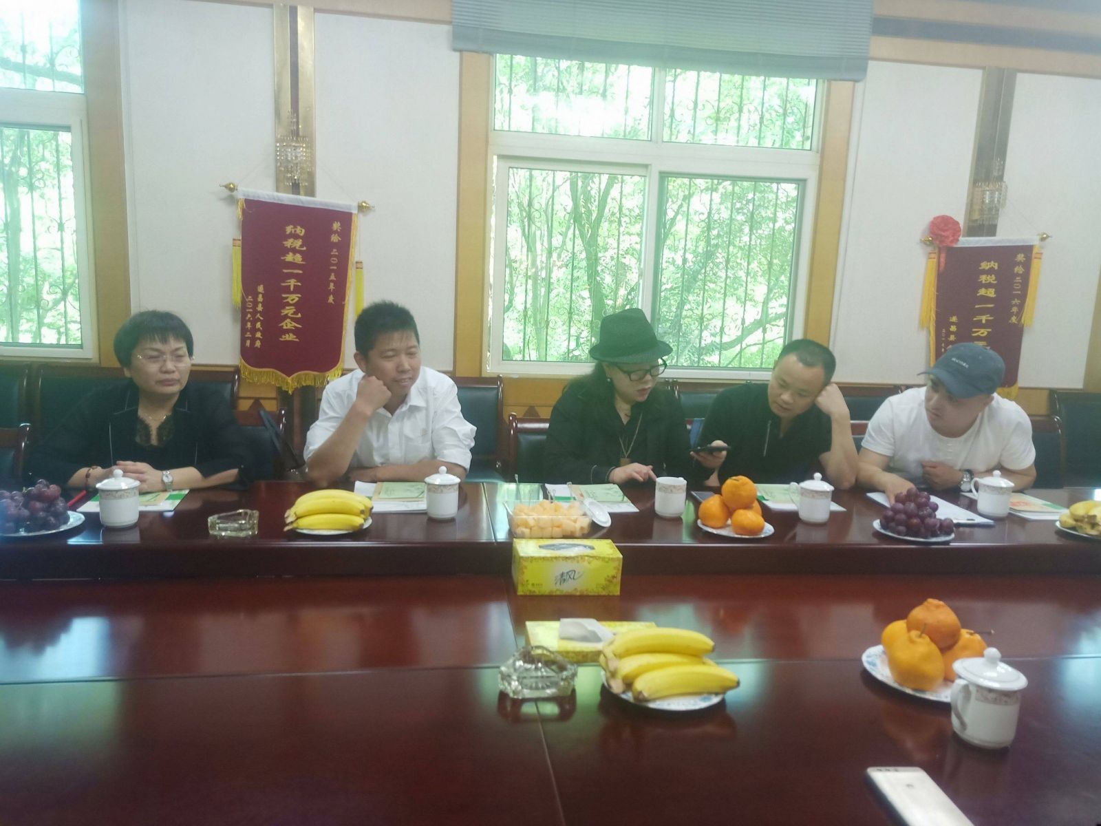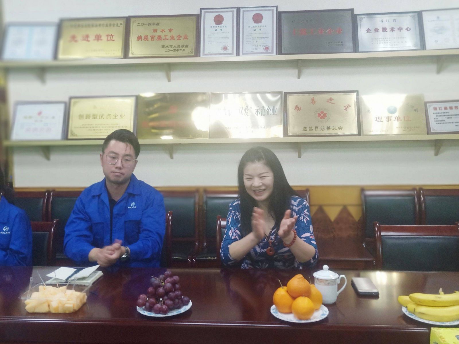 2019年5月23日上午,教導(dǎo)大學(xué)浙江分校校長黃威、纖碼國際總經(jīng)理黎芳芬、衢州瑞草堂健康管理有限公司總經(jīng)理留紅、杭州漁頭煲餐飲連鎖總經(jīng)理從光明等一行到訪浙江遂昌利民藥業(yè)有限公司,浙江遂昌利民藥業(yè)有限公司董事長汪菊娟在集團(tuán)公司會議室接待了他們。