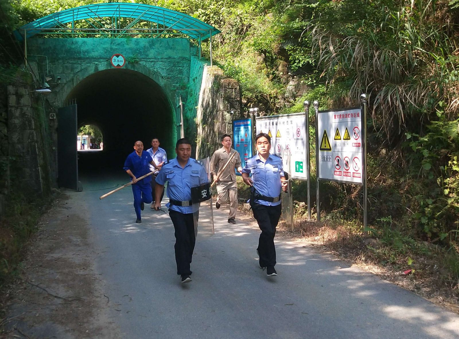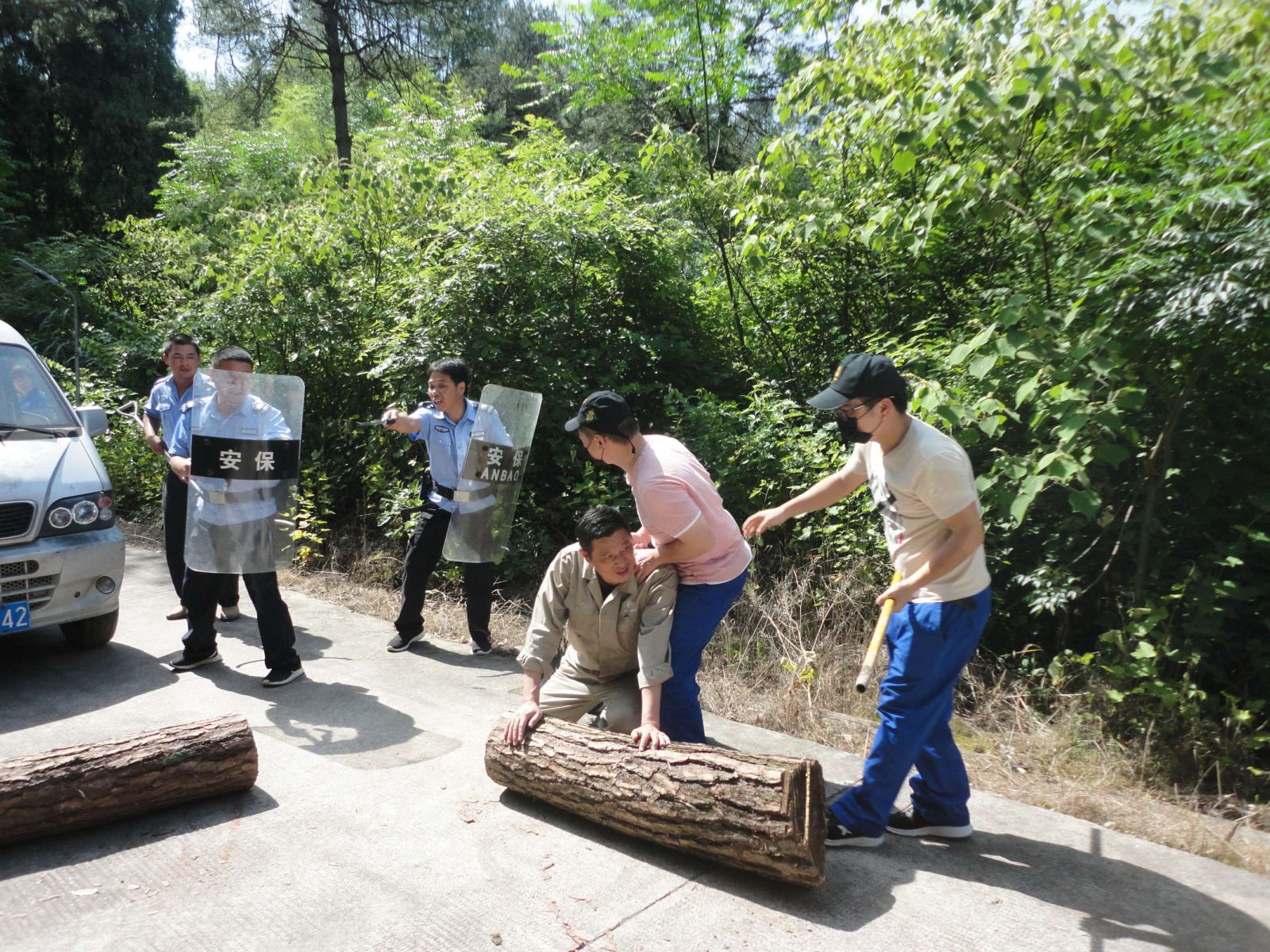 “歹徒”經(jīng)過精心預(yù)謀,在偏僻地段堵劫運(yùn)輸車輛實施搶奪民爆物品,制造恐怖事件。在搶劫過程中遭遇安保人員攔截,并挾持人質(zhì)進(jìn)行對抗,安保人員采用機(jī)智靈活地辦法與歹徒周旋。