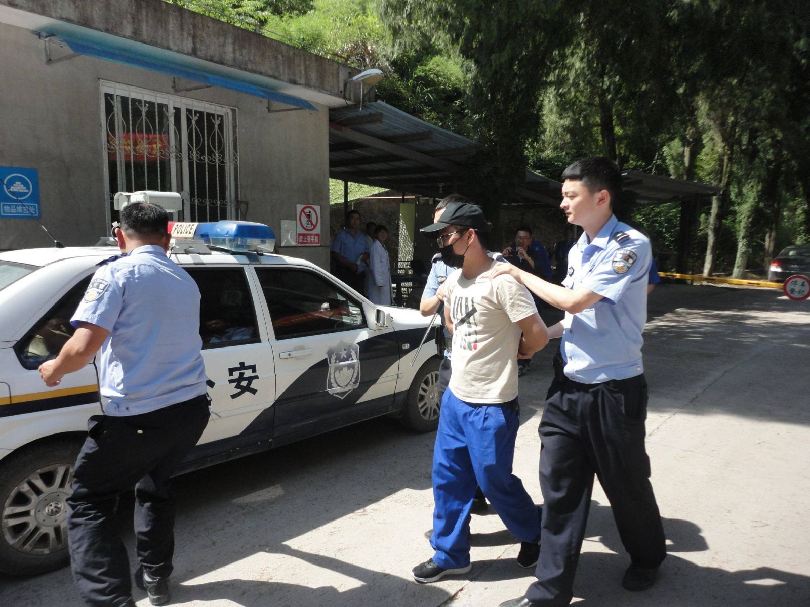 幾分鐘后,公司吳總和玖運(yùn)公司葉總帶領(lǐng)的應(yīng)急救援小隊及云峰派出所警員先后趕到,兩名歹徒被成功制服,帶回派出所。